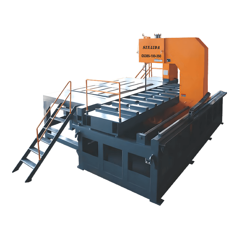 Metal Steel Cutting Sawing Vertical Band Saw machines are based on the friction between the saw band and the workpiece. The high-speed rotation of the saw band transfers mechanical force to the metal workpiece, and through continuous cutting and friction, the workpiece is gradually cut into the desired shape. The cutting part of the saw band is made of high-strength steel belt, and the belt teeth are specially treated to ensure that it can cut metal materials of various hardness. Unlike other types of band saw machines, the saw band of the vertical band saw is perpendicular to the workpiece. This structure effectively reduces deformation and vibration during the cutting process. The machine adopts an advanced servo control system, combined with a high-precision saw band tensioning device and a multi-functional feeding system, which can achieve precise cutting control and ensure the cutting accuracy of each metal workpiece. The equipment reduces energy consumption through optimized design, while reducing noise pollution and metal dust during the cutting process, meeting modern environmental protection requirements.